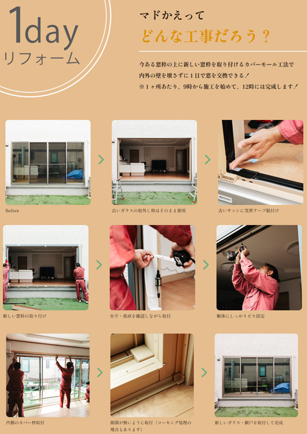たった一日で完了する今ある枠に新しい枠を取り付ける、