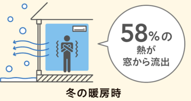 長く取りついている窓のままでは、いくら暖房をしても熱がどんどん逃げてしまう